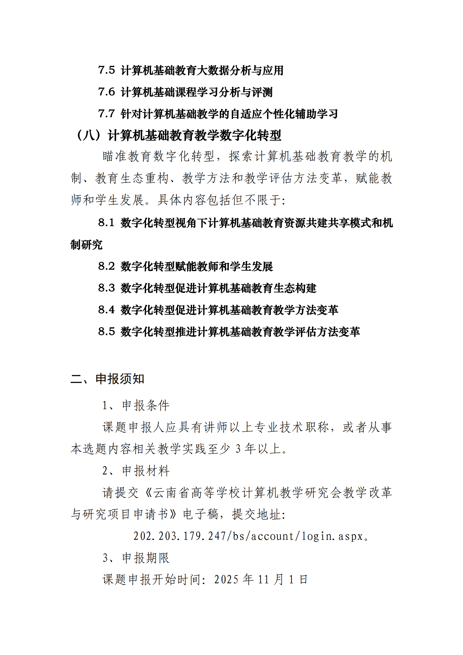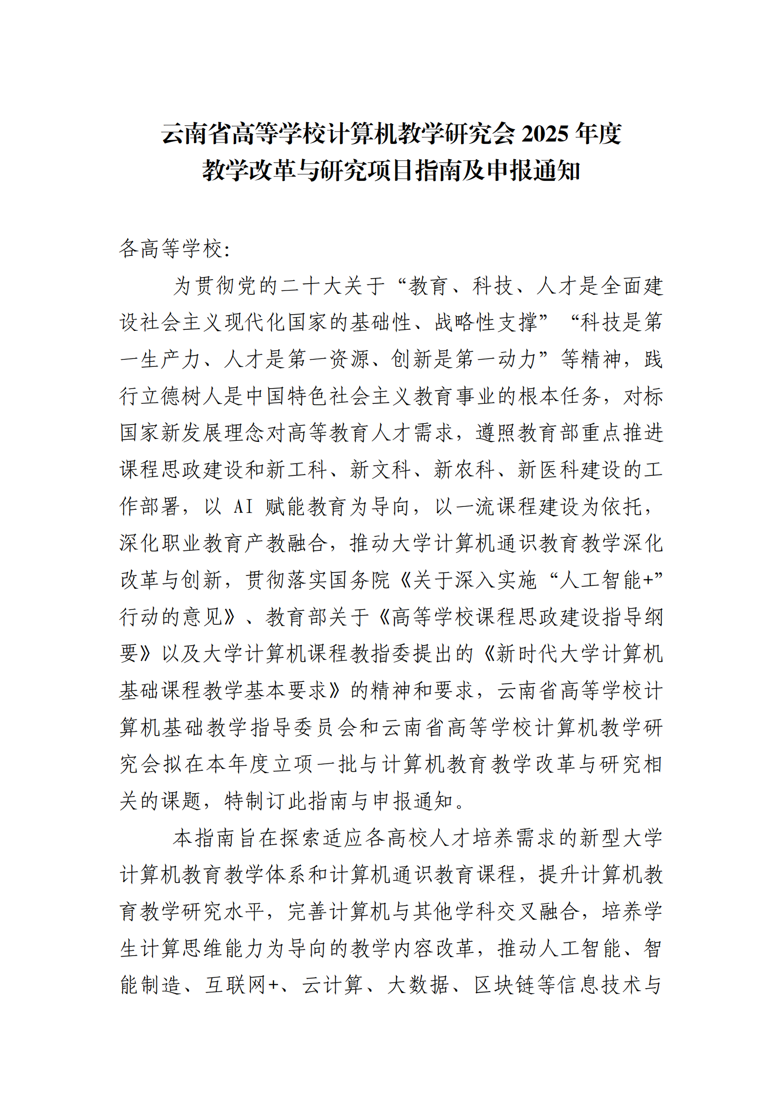 云南省高等学校计算机教学研究会2025年度教学改革与研究项目指南及申报通知